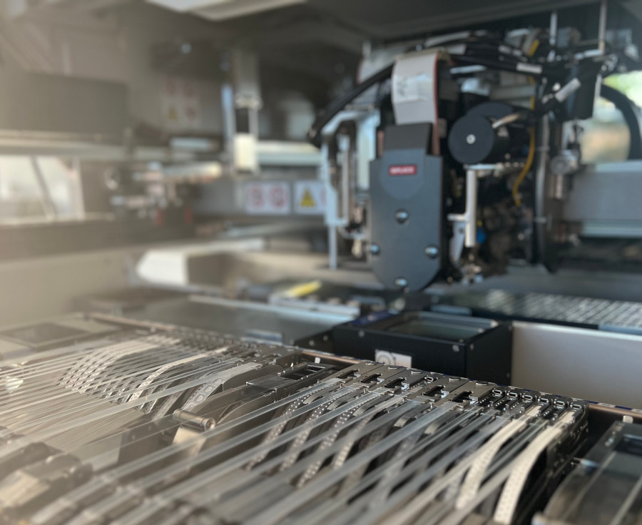 Im Gegensatz zur Oberflächenmontage ist die THT-Bestückung dadurch gekennzeichnet, dass die Bauteile Drahtanschlüsse besitzen. Diese werden bei der Bestückung in sogenannte Kontaktlöcher durch eine Leiterplatte gesteckt und müssen anschließend verlötet werden. Auch wenn im Zuge der Miniaturisierung von Bauteilen in den letzten Jahren die THT-Bestückung abnimmt, gibt es eine Reihe von Bauelementen (Steckverbinder, Kontaktleisten oder ähnliches), die nach wie vor als Durchsteckteile konzipiert sind. | ![]() |